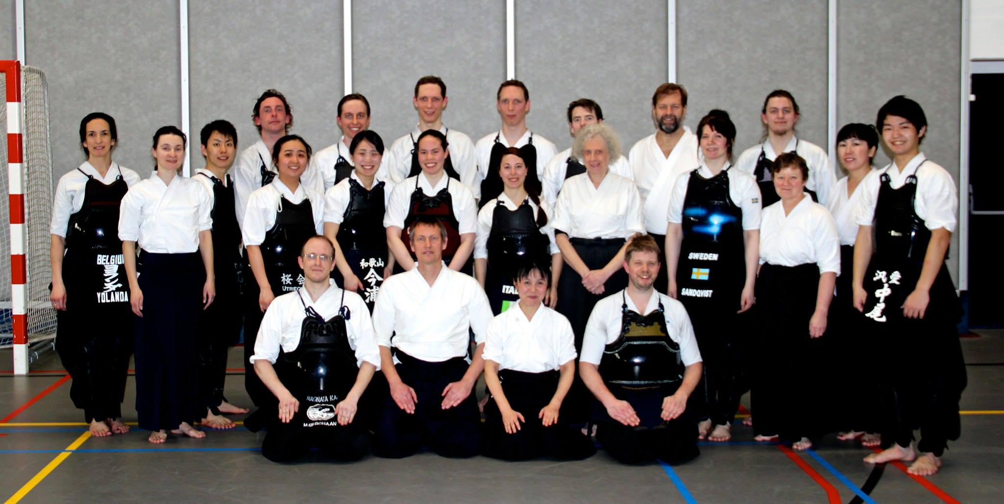 As every year the Nederlandse Naginata Renmei organize a spring seminar lead by a Japanese sensei. It is always a great opportunity for us to learn alot, improve our technique and meet new practicers. This year it was in Rotterdam with Imaura sensei , Kyoshi, from Osaka and 3 of her dojo students. It was a wonderful moment for all of us, beginners and more advanced practicers to learn more about shikake odji, zen nihon kata and bogu practice. Lots of European country answers to the invitation; Belgium, France, Italy, Sweden and even Greece were there to listen carefully to the great advice of Imaura sensei , her students and even 3 of our Godan from ENF member country. At the end of the first day we had a huge dinner party in a restaurant where there was so many things to eat that we were overfilled when we came out of it. The second day of the seminar was more bogu oriented as our European Champion were happy at the end of the day to do a little team tournament against the Japanese fighters who, actually, are the Local Japan University Champion, and, maybe the future fighters that will come in the Japanese team at a future World Championship. So everybody had a lot of fun at this seminar and we all came back home with great souvenirs and technicals details to correct in our practice.