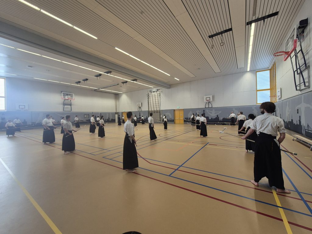 As every year, we attended the spring training camp organized by Nederlandse Naginata Renmei . This year, it took place in Utrecht, and the invited Japanese sensei was Nakadan Sensei. This kyoshi sensei from Itami is very focused on technique, and the seminar was mainly oriented toward the study of shikake odji and the Zen Nihon Kata. David D’Hose, the sensei from Belgium, and Joren, the sensei from the Netherlands, assisted Nakadan Sensei, which made it possible to create three groups among the 35 participants who came from Italy, France, Hungary, Belgium, Germany, and of course the Netherlands.